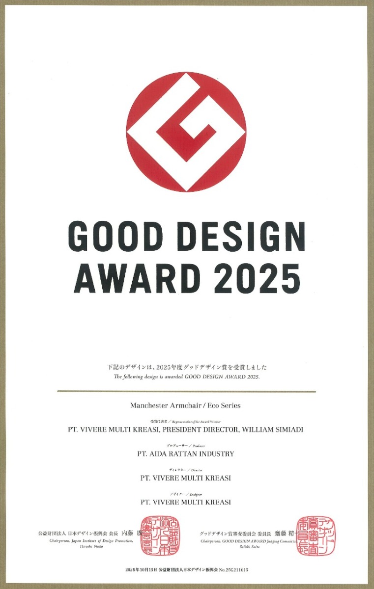 VIVERE Collection proudly celebrates international recognition as the Manchester Armchair – Eco Series receives the prestigious Good Design Award 2025 (Japan). This honor highlights VIVERE’s continuous pursuit of meaningful design, where comfort, craftsmanship, and sustainability coexist beautifully.